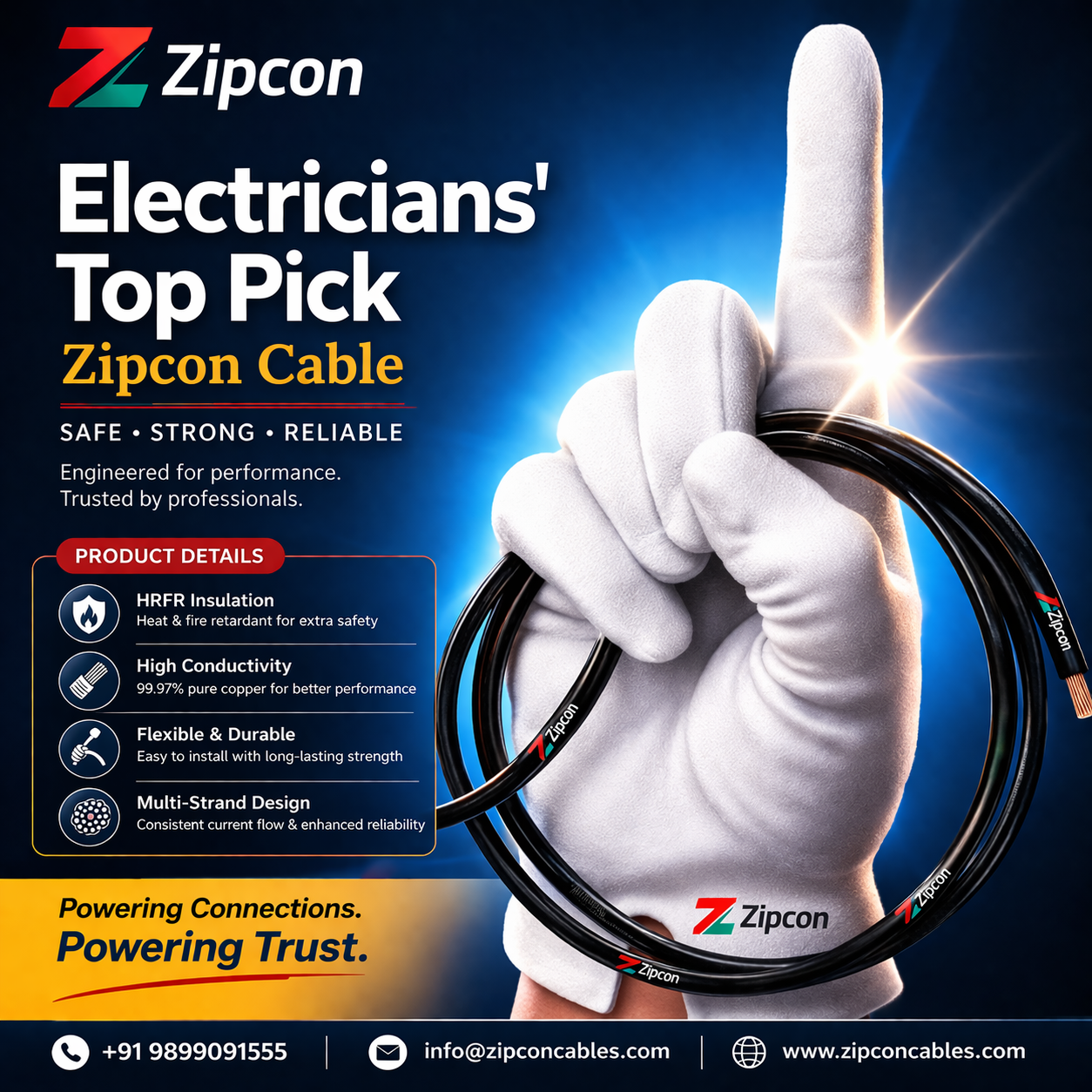 Zipcon Cables offers durable, high-quality products designed for reliable performance in both residential and industrial environments.