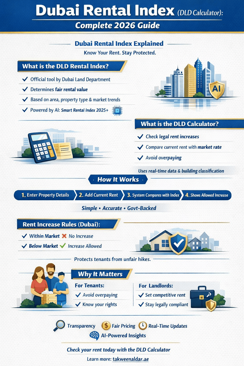 The DLD Rental Index reflects real-time market trends, helping both tenants and investors understand rental pricing across the city.