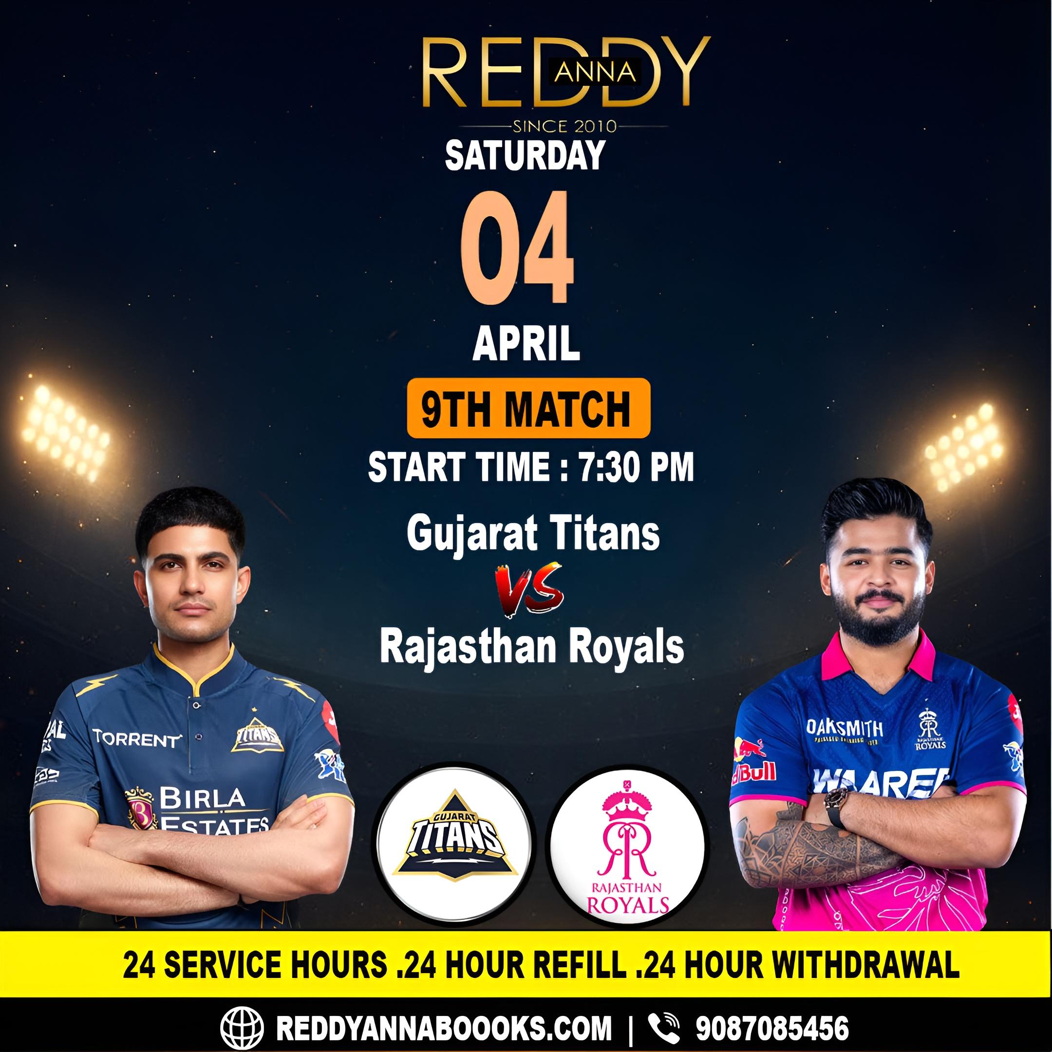 Catch every heartbeat of the 7 PM clash between Gujarat Titans and Rajasthan Royals with Reddy Anna live updates. From toss to final over, stay informed with sharp insights, match highlights, and expert predictions. Experience the thrill, drama, and action of this must-watch IPL encounter like never before.