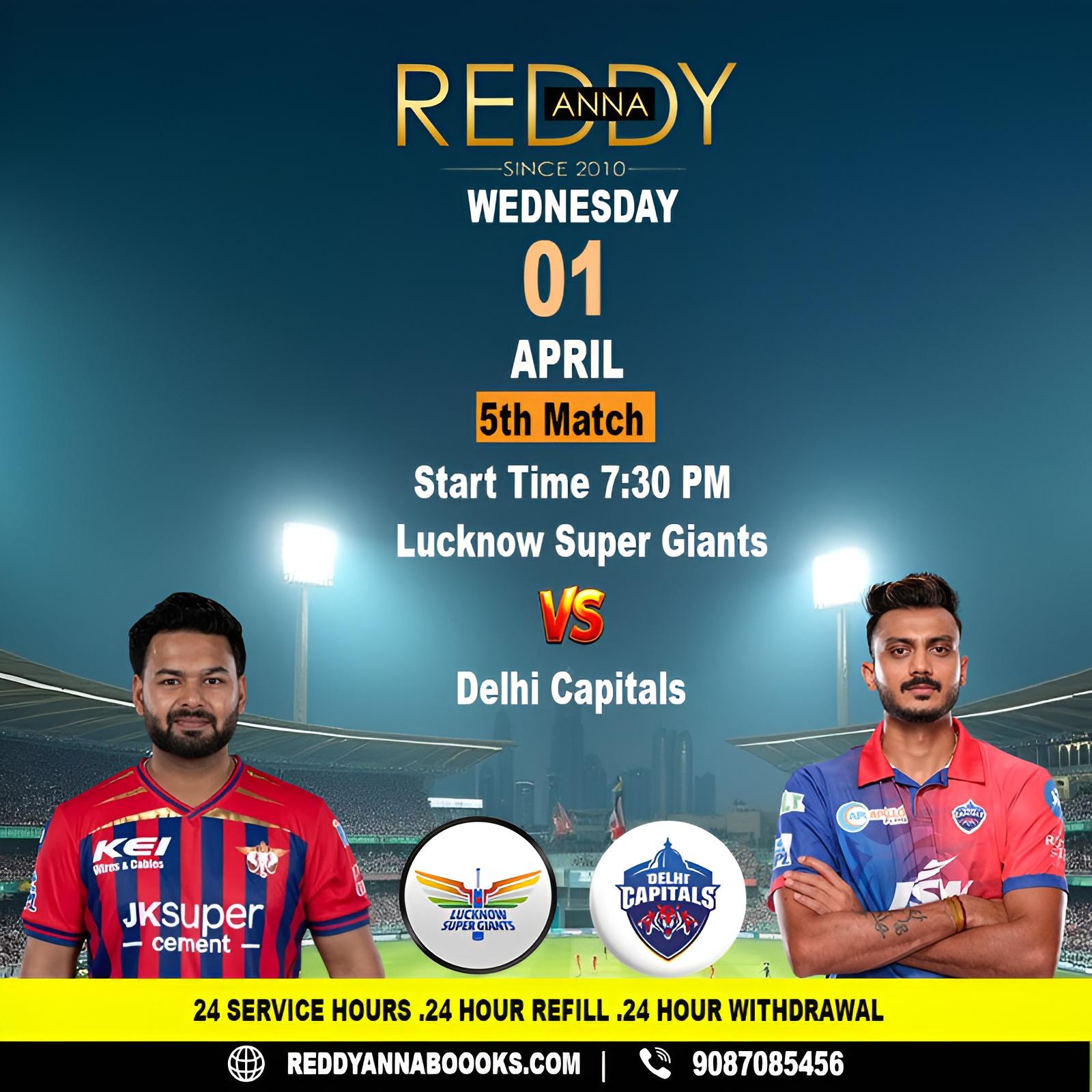 7:30 PM Showdown is here as Reddy Anna presents the epic LSG vs DC clash! Get ready for explosive batting, sharp bowling, and intense moments as both teams battle for victory. Don’t miss this high-energy IPL action packed with excitement till the last ball.